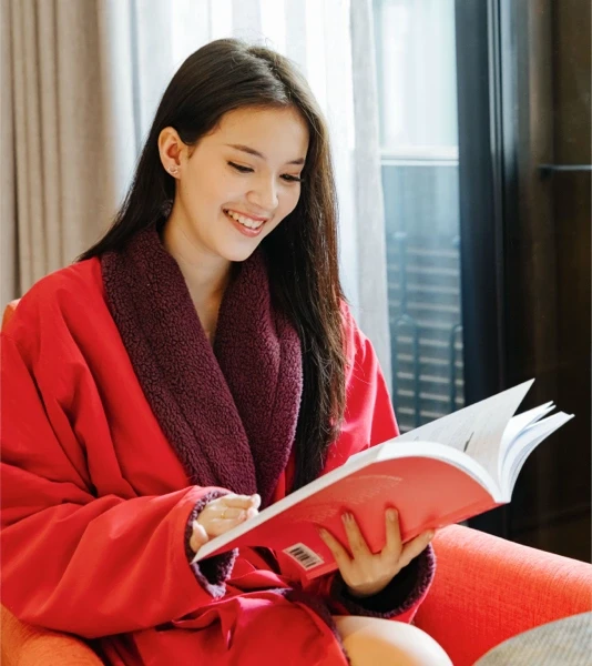Our room amenities include air conditioning, a smart TV, a complimentary minibar, and facilities to prepare your beverages, such as coffee and tea. Each room also includes a private bathroom. It includes HARNN toiletries, adding a touch of luxury to your routine, bathrobes, and slippers. We also provide added comforts, such as a pillow menu and a daily turndown service, to help you unwind and enjoy a relaxing end to your evening.