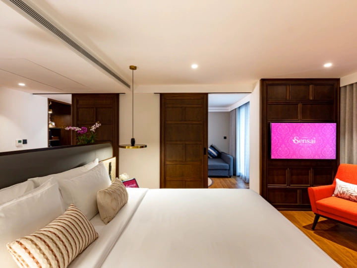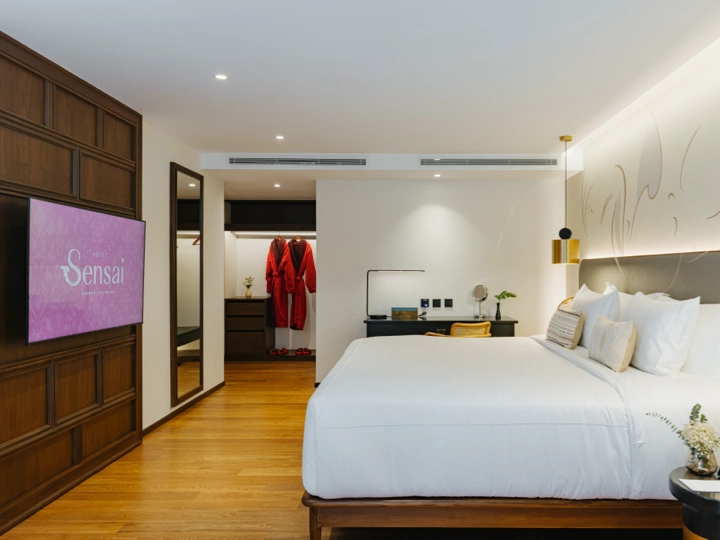 We offer stylish Deluxe Rooms (31 sqm); Pool Access Room (32 sqm) with direct pool entry; Junior Suite (65 sqm) with a separate living area; Sensai Suite (65 sqm); Corner Suite (77 sqm) offering pool views; and the Penthouse (155 sqm). There’s a suite of every kind designed just for you.