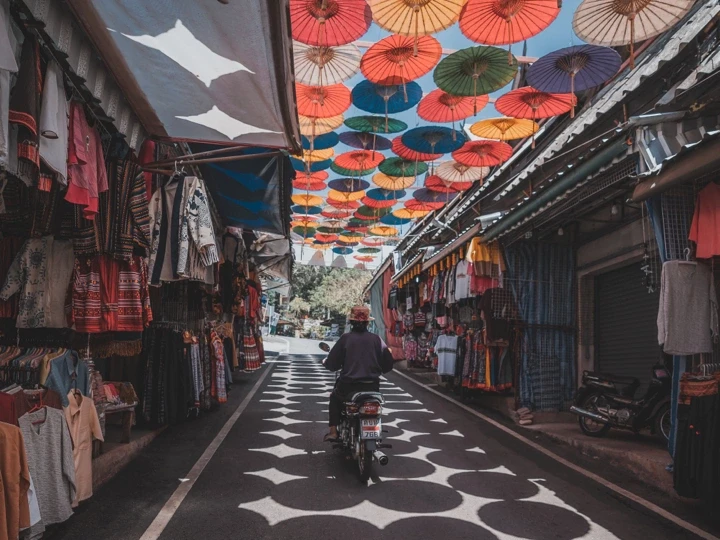 Brimming with handmade goods and trinkets, the Sunday Market stretches from the Tha Pae Gate through Ratchadamnoen Road. Talented musicians add to the appealing ambiance every Sunday night. The intersection of Rachadamnoen Road and Ratpakinai Road awaits with food stalls galore. Visit, and you can get anything from sweet banana pancakes and sausages to mouthwatering noodles and sushi.